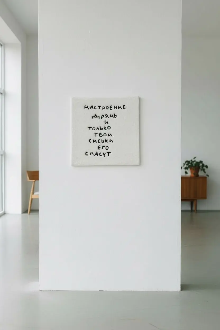 Мы делаем совместные тафтинговые ковры с художником Йосей. В его практике текст живёт на разных носителях: на керамике, в предметах, в коллаборациях с брендами, в том числе с брендом нижнего белья. Для него важен не материал сам по себе, а надпись и то, как она существует в пространстве.